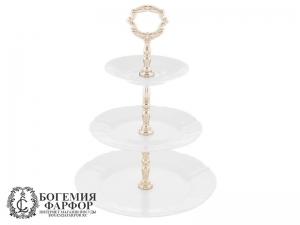 Этажерка Бернадотт 3-х ярусная изготовлена из белого фарфора чешской компанией Thun 1794. Данный предмет из серии Bernadotte, выполнен без декора. Посуда может использоваться для ресторанов и кафе. Край борта украшен рельефом.