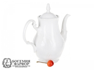 Кофейник Бернадотт с крышкой 700 мл, изготовлен из белого фарфора чешской компанией Thun 1794. Данный предмет из серии Bernadotte, выполнен без декора. Посуда может использоваться для ресторанов и кафе. Край борта украшен рельефом.