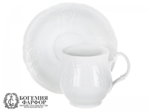 Кружка Бернадотт Джонас с блюдцем изготовлена из белого фарфора чешской компанией Thun 1794. Имеет низкую устойчивую ножку. Данный предмет из серии Bernadotte, выполнен без декора. Посуда может использоваться для ресторанов и кафе. Край борта украшен рельефом.