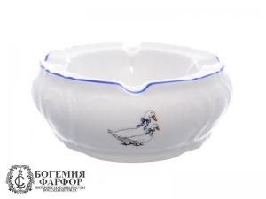 Пепельница Бернадотт изготовлена из белого фарфора чешской компанией Thun 1794. Данный предмет из серии Bernadotte, выполнен в декоре Гуси. Край борта украшен синей обводкой.